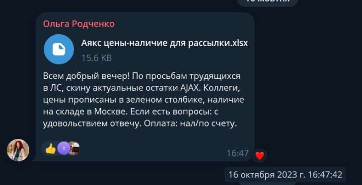Еще несколько актуальных скриншотов по каналу, в которых говорится о наличии техники Ajax в Москве.