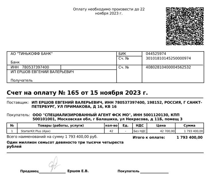 Согласно квитанции оплаты услуг, реализацию продукции Ajax на территории России осуществляет «ИП Эршов Евгений Валерьевич». На сайте Ajaxstore.ru, реализующего продукцию Ajax на территории России, в соглашении пользователей также отмечается ЧП – Чмутова Анна Александровна.