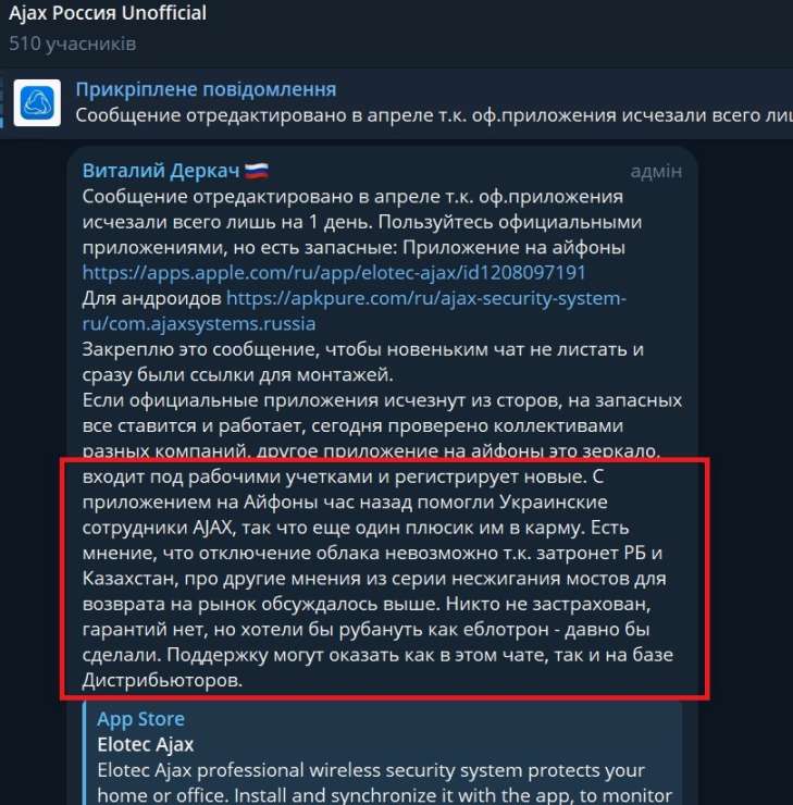 Что важно, в официальном «неофициальном» телеграмме-канале https://t.me/Ajaxru пользователи подтверждают, что все настройки для Казахстана подходят и для России, и что это сделано намеренно, чтобы работать на рынке России.