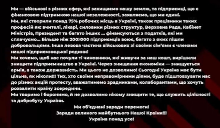 «Збиралися ветерани-військові та підприємці. Тобто два найпотужніші крила українського суспільства – люди, які захищають нас, нашу країну, нашу націю від зовнішньої агресії, та ті, хто підтримують нашу країну, нашу націю зсередини, підтримують фінансово, створюючи додаткову вартість і працюючи саме на нашу Перемогу – це бізнес», – зазначив він.