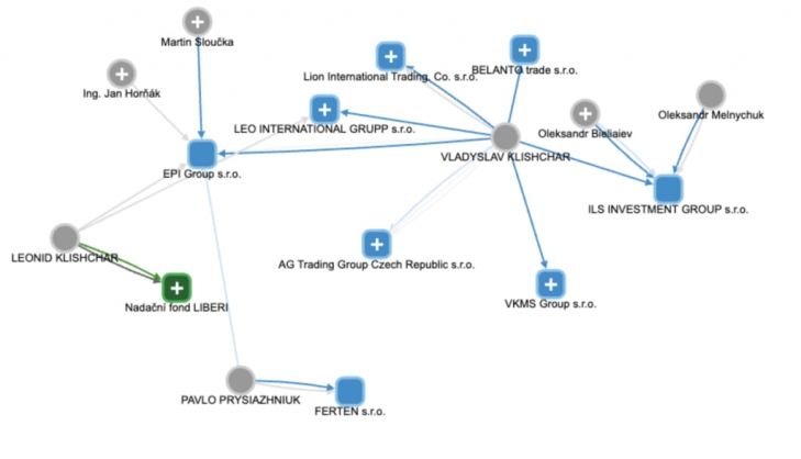 Чешскими компаниями, которые получили товар и перепродали его в оккупированный Крым компании ”Юкрейниан Кемикал Продактс” — титановому заводу олигарха Дмитрия Фирташа — оказались, как выяснили журналисты, Belanto trade s.r.o. и EPI Group s.r.o., где учредителями на тот момент выступали Владислав Клищар и Павел Присяжнюк, а директором EPI Group s.r.o. вплоть до середины 2022 года являлся Леонид Клищар, сын Владислава Клищара.