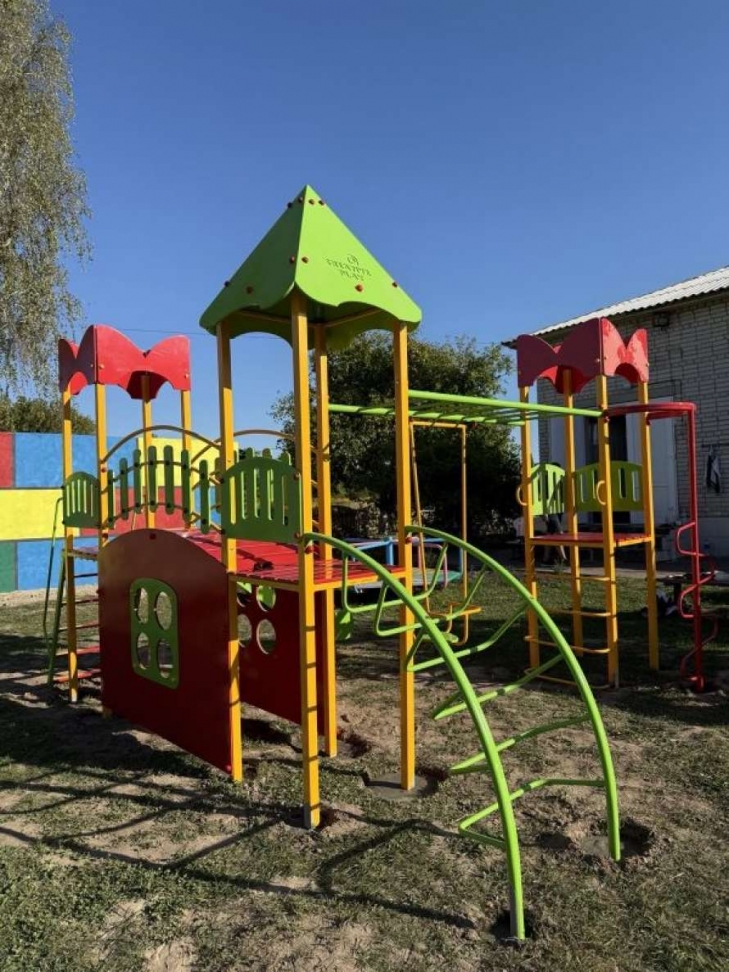 Щасливий день для дітей громади села Королівка Макарівського району на Київщині — фонд “Вогонь запеклих не пече” та благодійники з ГУР МО України придбали та встановили новий дитячий майданчик на території садочку “Сонечко”.