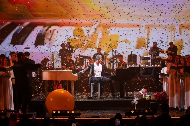 Також зі сцени він звернувся до глядачів зі словами про війну, людську стійкість і важливість підтримки тих, хто сьогодні захищає Україну та працює в умовах постійної небезпеки — військових і медиків. Композитора привітали співзасновниця Благодійного фонду молодіжної ініціативи «Надія» Віта Присяжнюк та волонтер Олексій Сологуб, подякувавши за послідовну співпрацю та підтримку гуманітарних ініціатив фонду.