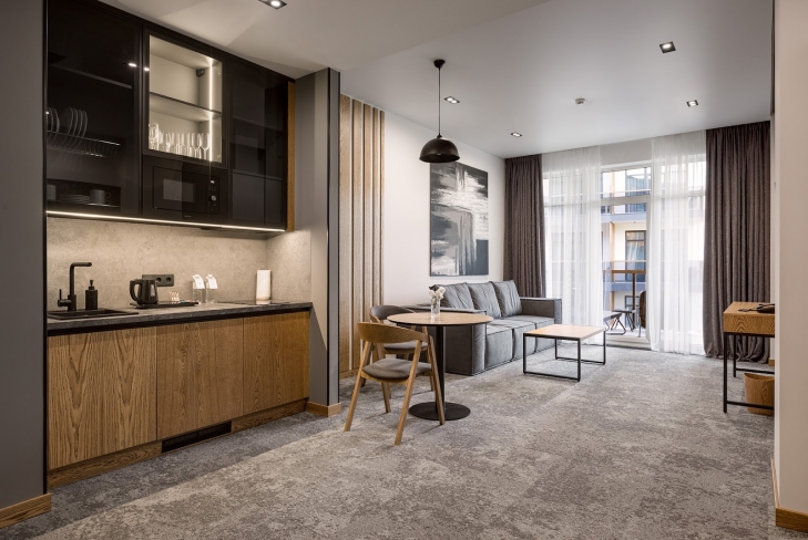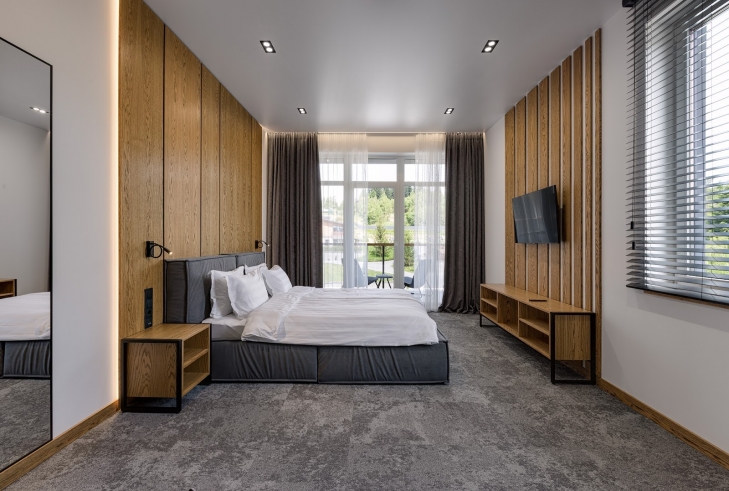 Щоб відпочинок залишався комфортним для всіх, важливим стає сам простір. Якщо норми ДБН дозволяють п’ятизірковому готелю мати номери від 16 м², то стандарт Luxury Wellness Resort 2025 — мінімум 34 м² повноцінного житлового простору з обіднім столом і повнорозмірним балконом.