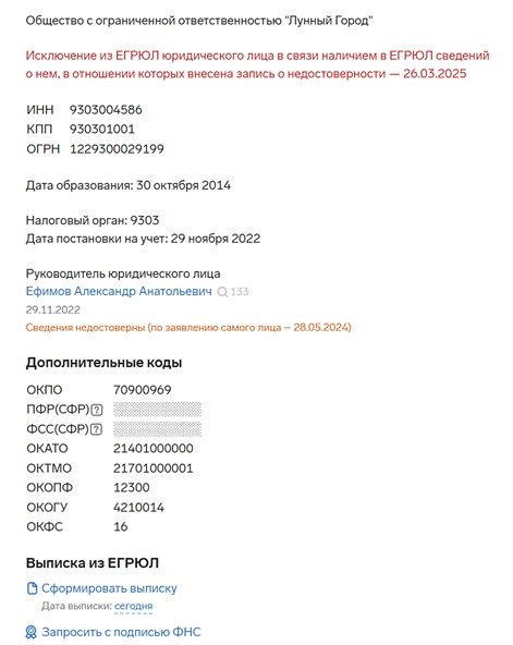 Аналогічна ситуація, схоже, простежується і з іншими структурами, пов’язаними з Гельзіним. Зокрема, ТОВ «Нептун» та ТОВ «ЛУННЫЙ ГОРОД». Компанії з такими ж назвами та пов’язаними бенефіціарами з орбіти Гельзіна зареєстровані в Росії наприкінці 2022 — на початку 2023 року.