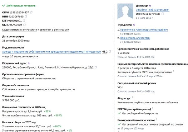 Вона створена у 2015 році, вже після окупації Криму, і має юридичну адресу в Ялті.