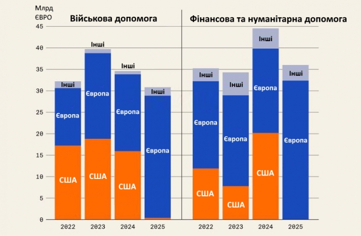 Географічна Структура міжнародної допомоги Україні у 2022-2025 роках, млрд євро