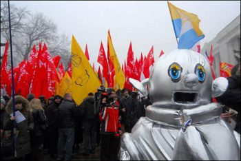 Около 1 тыс. сторонников Блока Юлии Тимошенко и партии "Велика Україна" пикетируют Верховную Раду с требованием отставки мэра Киева Леонида Черновецкого.