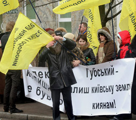 В тот же день пикеты от этой организации были выставлены и возле офиса БЮТ. Как известно, 23 января ОСНБО принял обращение к Премьер-министру Украины, лидеру БЮТ Юлии Тимошенко, в котором шла речь о заострении ситуации с решением земельного вопроса, причастным к которому, по утверждению авторов обращения, есть член БЮТ Б. Губский. Тогда же был начат сбор подписей возмущенных граждан под текстом обращения, которое во время пикетирования было передано в канцелярию Кабмина. Планируется также передача копий письма в Секретариат Президента и Председателю ВР А. Яценюку. Кроме того, по словам участников акции, на протяжении недели в канцелярии БЮТ и Кабинета Министров будут приходить представители ОСНБО с вопросом о реакции на обращение.