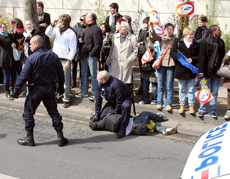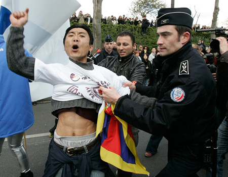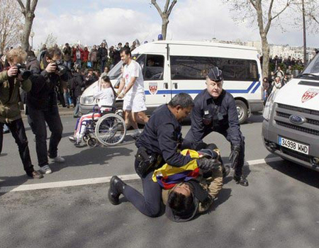 У Эйфелевой башни, где началась эстафета, были зафиксированы многочисленные беспорядки между силами правопорядка и сторонниками независимости Тибета.