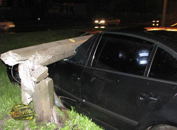 На пересечении улиц Шумского и Березняковской 44-летний водитель черной «Skoda» Superb, не справившись с управлением, протаранил электрический столб.