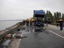 ДТП произошло вечером 21 октября. По предварительным данным ГАИ, фура выехала на встречную полосу и врезался в микроавтобус, груженный товаром, сообщает ТСН.