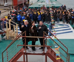 Спуск суден на воду состоялся в среду в Николаеве в теплой дружеской и неформальной атмосфере. В начале торжественного мероприятия генеральный директор ООО СП «НИБУЛОН», Герой Украины Алексей Вадатурский и генеральный директор ОАО «Вадан Ярдс Океан», Герой Украины Николай Романчук вместе с работниками двух предприятий прямо на палубе одного из суден у специально установленной украшенной елки подняли бокал шампанского, поздравив трудовые коллективы с новогодними праздниками и Рождеством Христовым.
