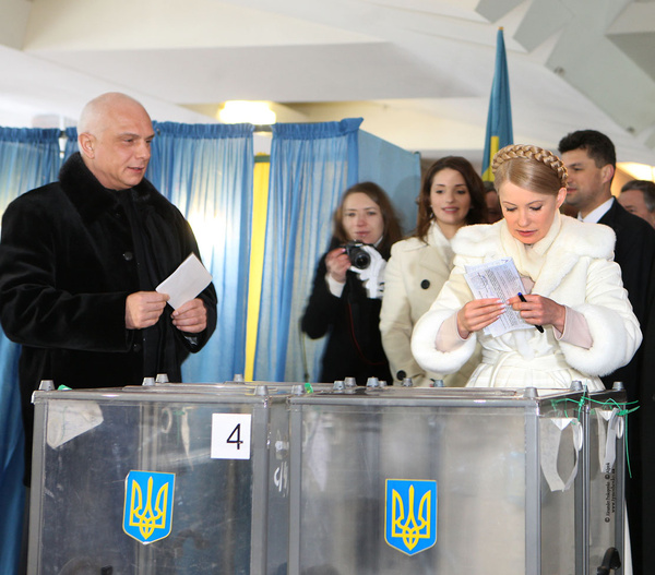 Юлия Тимошенко голосовала на избирательном участке N2 территориального избирательного округа N26 в Днепропетровске в помещении Днепропетровской государственной медицинской академии.