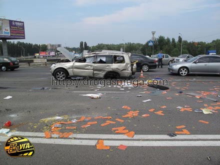 Авария произошла в Киеве вблизи Одесской площади. Mitsubishi спортсмена, который ехал вместе с женой, несколько раз перевернулась после столкновения с SUZUKI Vitara, которая выехала на встречную полосу.