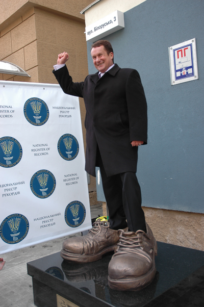 В этой связи эксперт Национального реестра рекордов Украины Виталий Зорин отметил: «БРОКБИЗНЕС» - это первая страховая компания, которая попала в Национальный реестр Украины. Это единственный памятник ботинкам такого размера, которые можно померить, что собственно мы и зафиксировали».