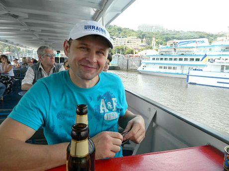 На нем он снят в непринужденной обстановке на Днепре на фоне видов Киева.