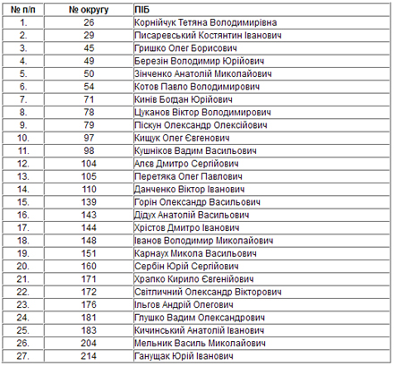 «Батькивщина» обнародовала полный список мажоритарщиков, которых сняла с выборов. На сайте объединенной оппозиции появился полный список кандидатов-мажоритарщиков, которых сняли с выборов в пользу «УДАРа».