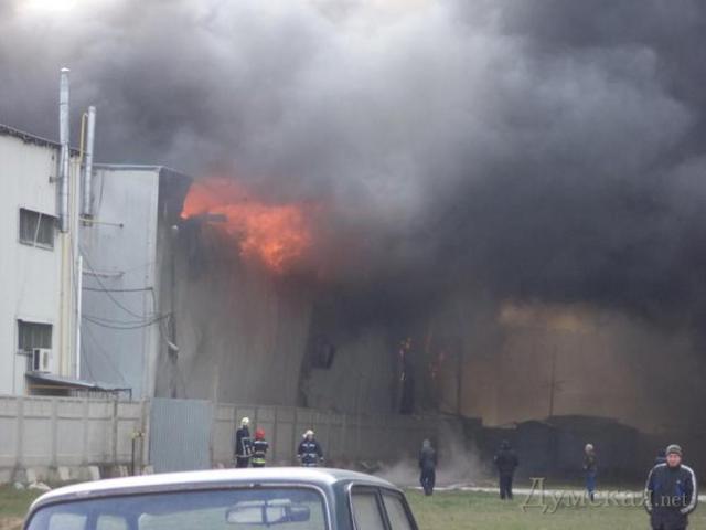 Крупный пожар в Южном. В полдевятого утра в городе-спутнике Одессы вспыхнули склады сантехники.