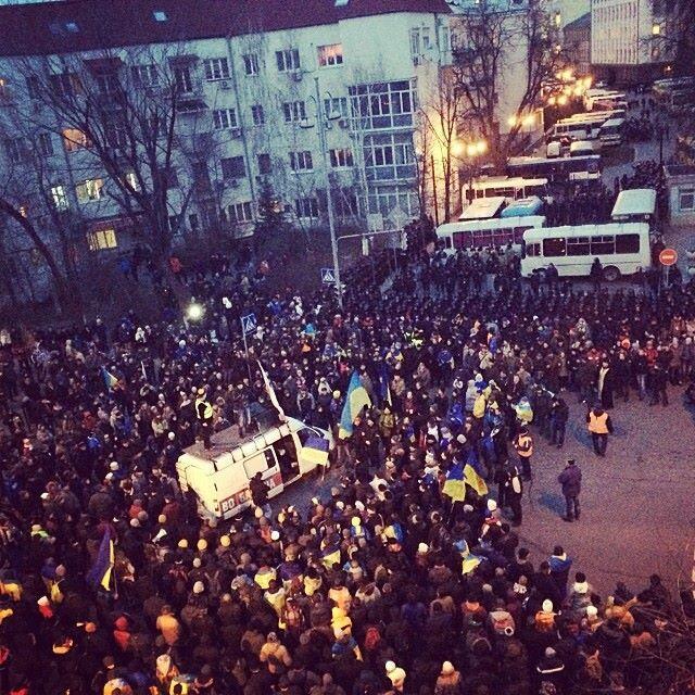 Более 50 тысяч митингующих полностью заблокировали все входы и выходы в Администрацию президента. Так основная масса митингующих перекрыла улицу Банковую со стороны Институтской, не менее массовый пикет проходит со стороны улицы Лютеранской.