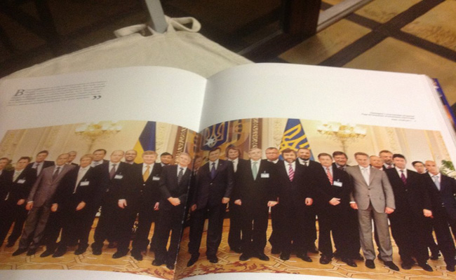 «И обратите внимание - ленточка на президенте на обложке почти такая, как мы на Майдане носим - сразу видно, до Вильнюсского саммита человек книгу писал», - добавила она.