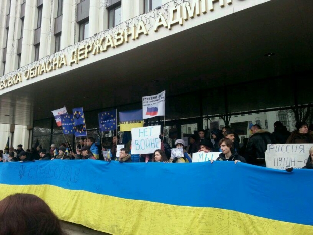 В Днепропетровске участники 10-тысячного Народного вече, которое проходит на площади перед областной государственной администрацией, скандирует «долой Путина!» и «Украина - единая, неделимая!», передает УНИАН.