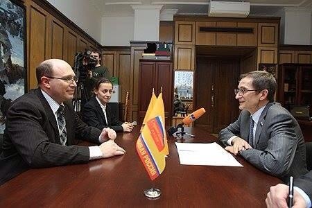 «Это недавнее фото из кабинета одного из лидеров СР Николая Левичева. Говорят, что сделана 4 июля: Говард Соломон, заместитель министра-советника по политическим вопросам Посольства «вражеской» Америки получает от Николая Владимировича поздравления с Днем независимости США. А еще в партии есть целый международный отдел с профессионалами, которые взаимодействуют (как и должно быть в нормальной партии) с различными посольствами, фондами (включая американские), партиями, Социнтерном и т.д. Но чего не сделаешь ради пиара и благодарности Кремля?!», - написал депутат.
